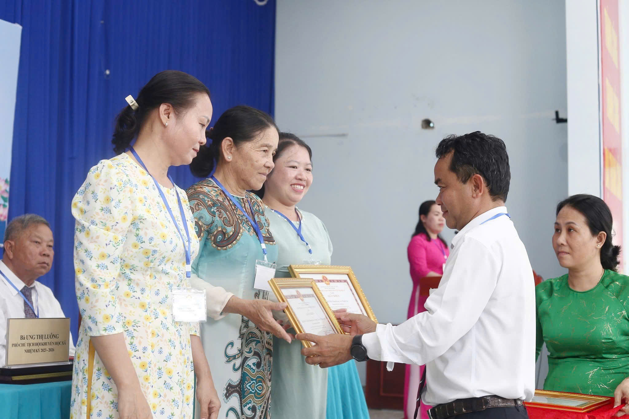 Dịp này, UBND xã trao tặng giấy khen cho 03 tập thể và 03 cá nhân có thành tích xuất sắc trong công tác khuyến học, khuyến tài, xây dựng xã hội học tập giai đoạn 2023 – 2026.